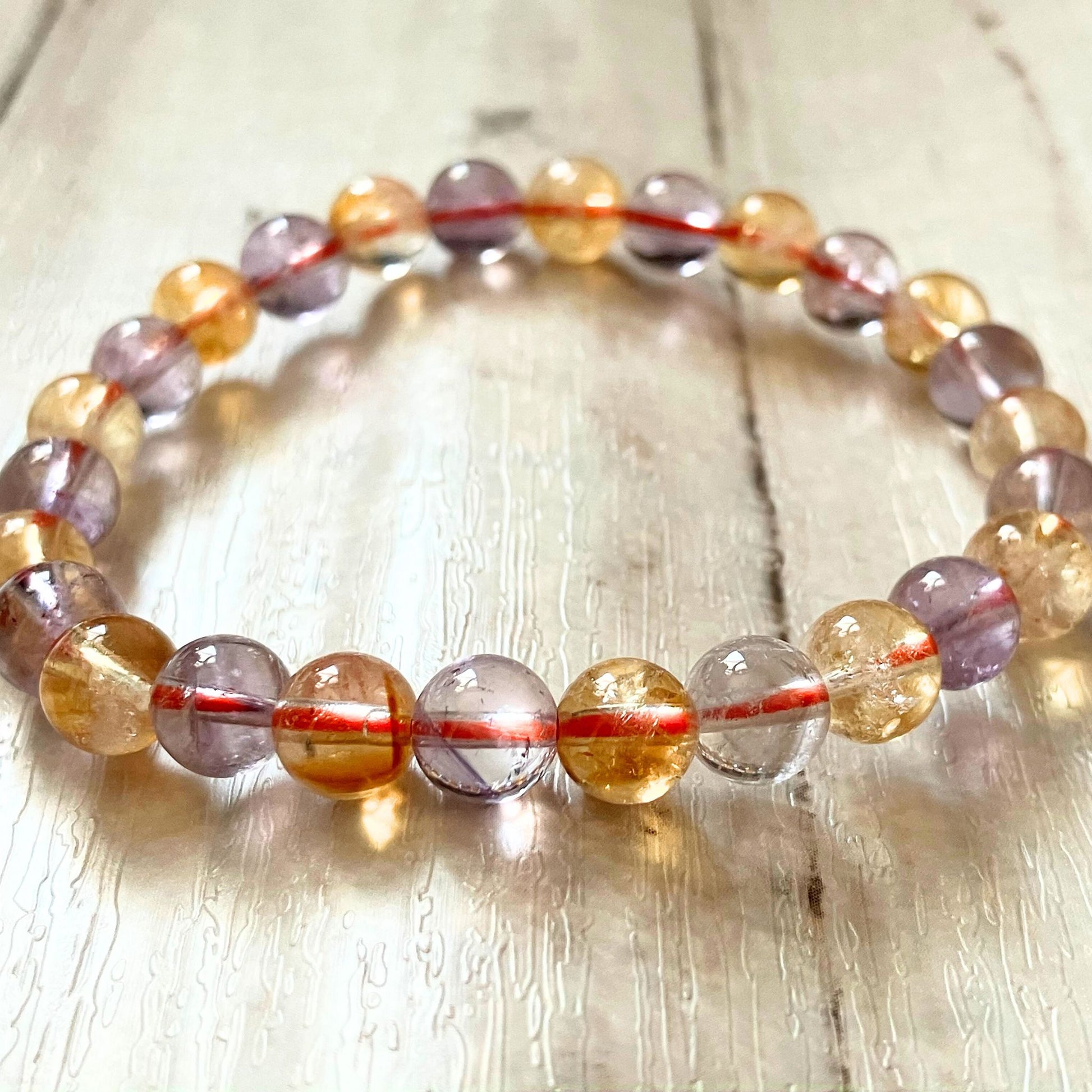 天然アメトリンブレスレット┃ 紫と黄金色が交差する美しい彩り7mm