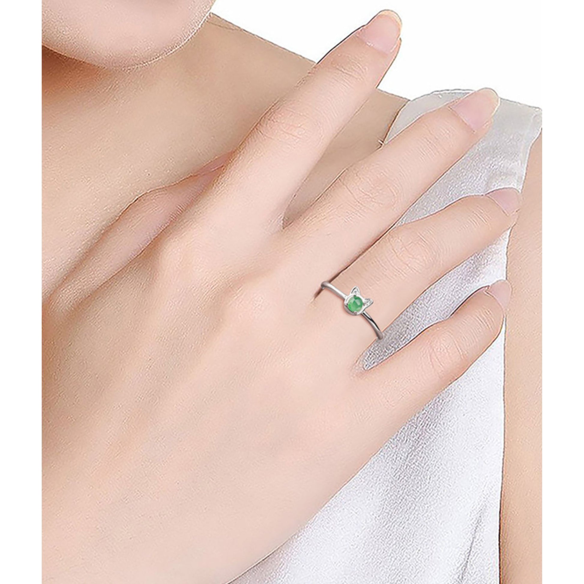 天然A貨翡翠 猫耳リング|上品で可愛らしい天然石ジュエリー